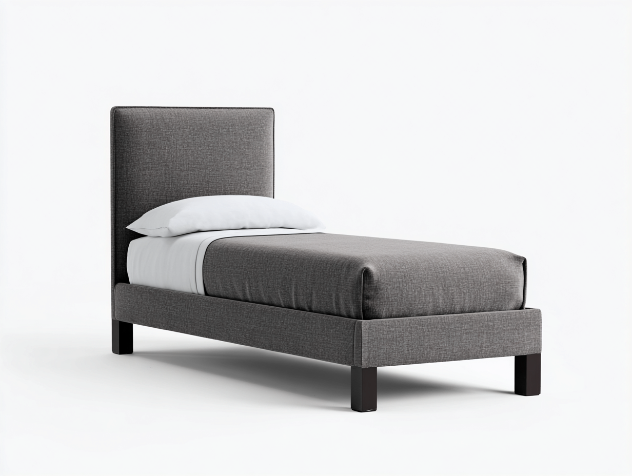 Single Beds Upholstered Fabric Single Bed Frame 200x100x110 cm - Dark Grey - Modern Bedroom DesignAUD 140.28