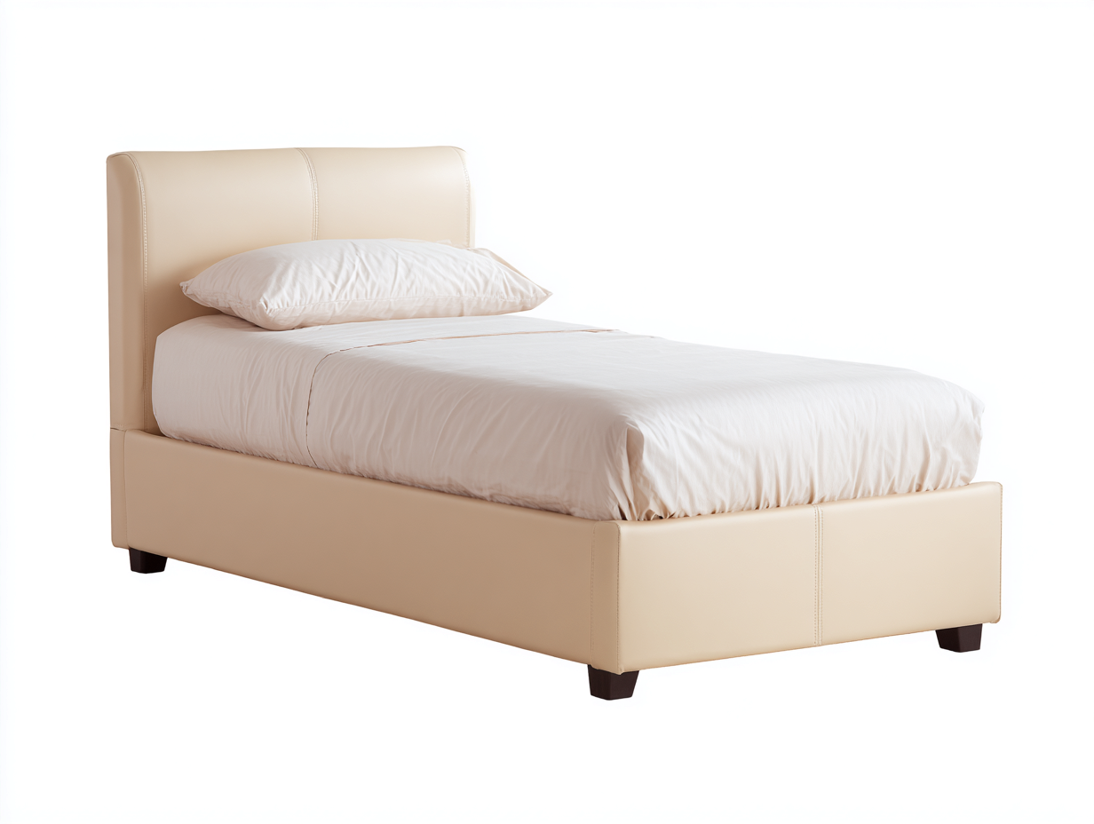 Single Beds Upholstered Single Bed Frame 200x100x110 cm - Beige - Modern Bedroom DesignAUD 146.72