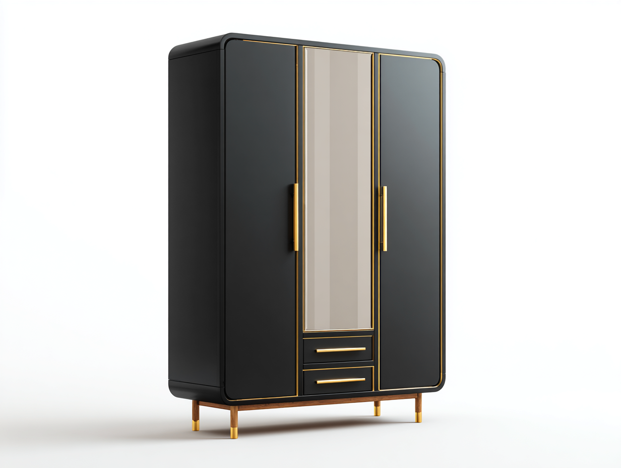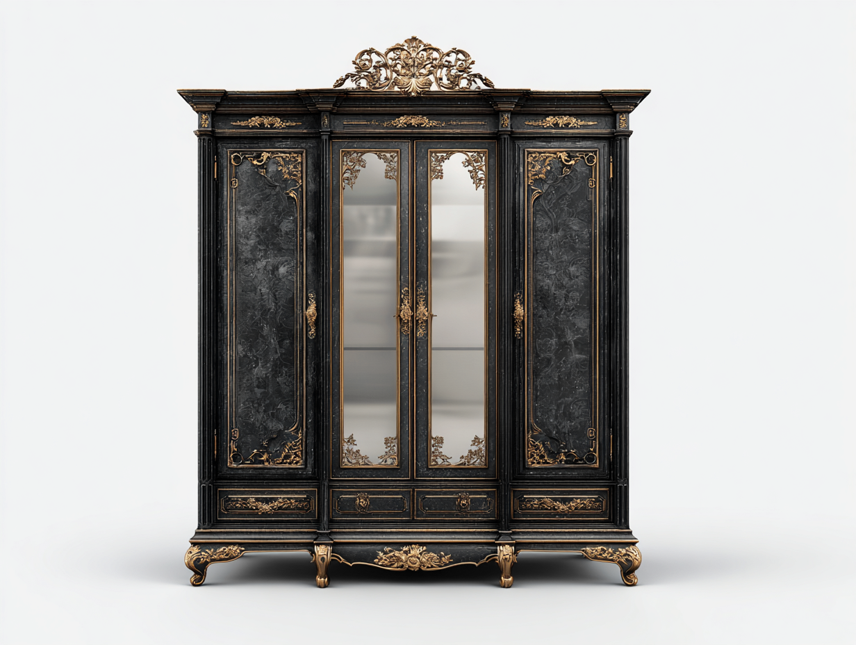 Wardrobes Classic Storage Wardrobe with Mirror 180x60x220 cm - Black-Gold - Elegant DesignAUD 147.31
