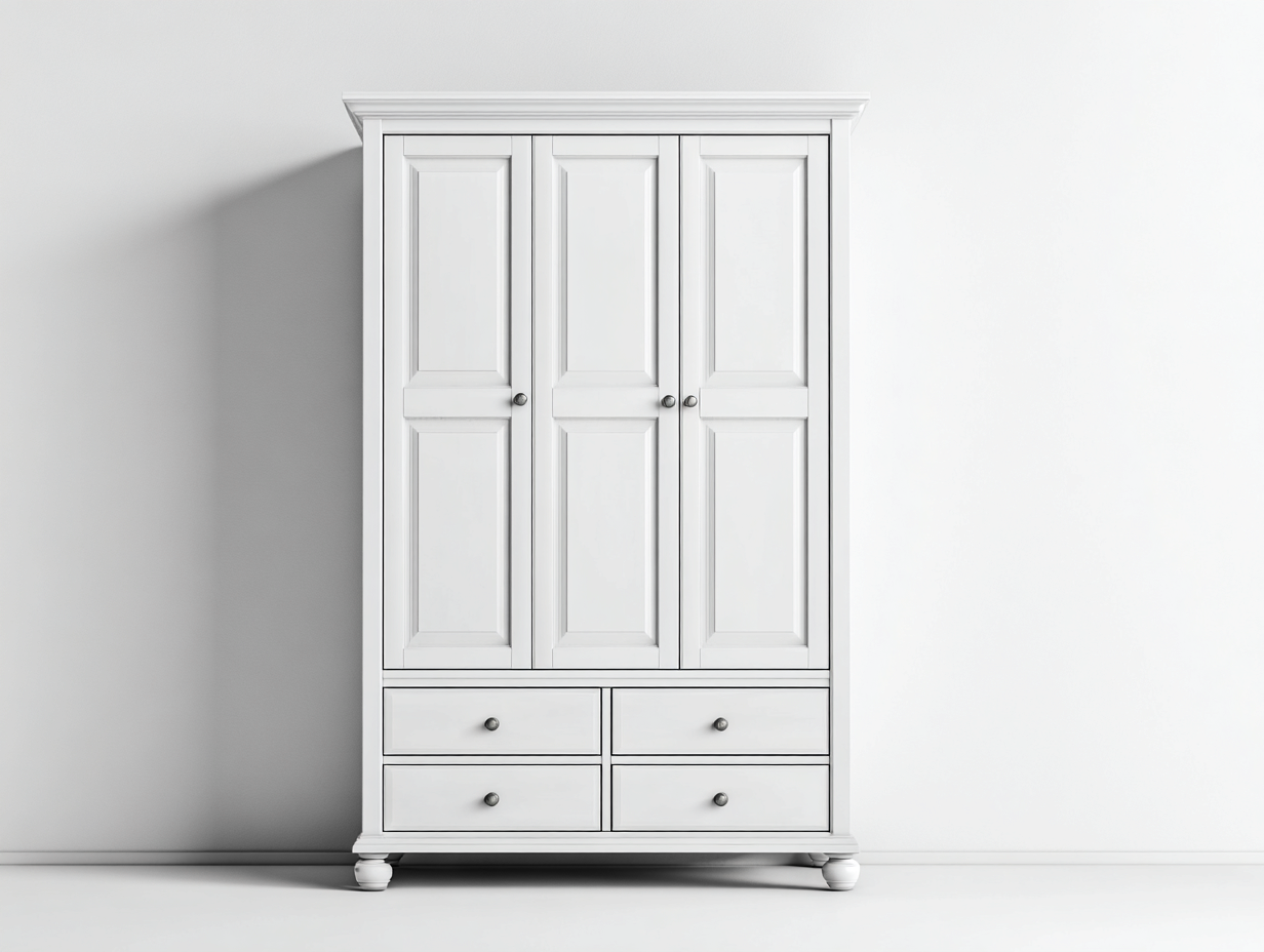 Wardrobes Wooden Wardrobe with Drawers 135x60x200 cm - White - Classic Bedroom Storage DesignAUD 147.15