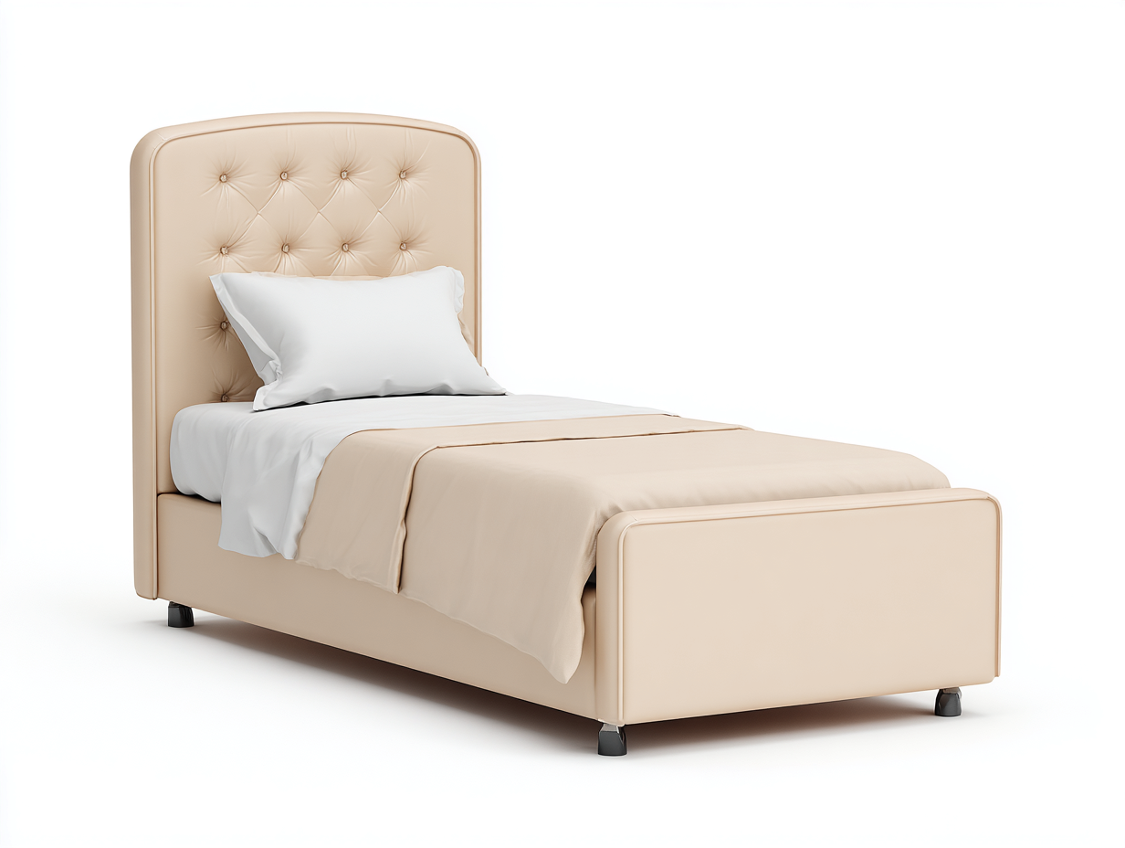 Single Beds upholstered fabric frame with padded headboard 200x100x110 cm - beige - classic comfort design