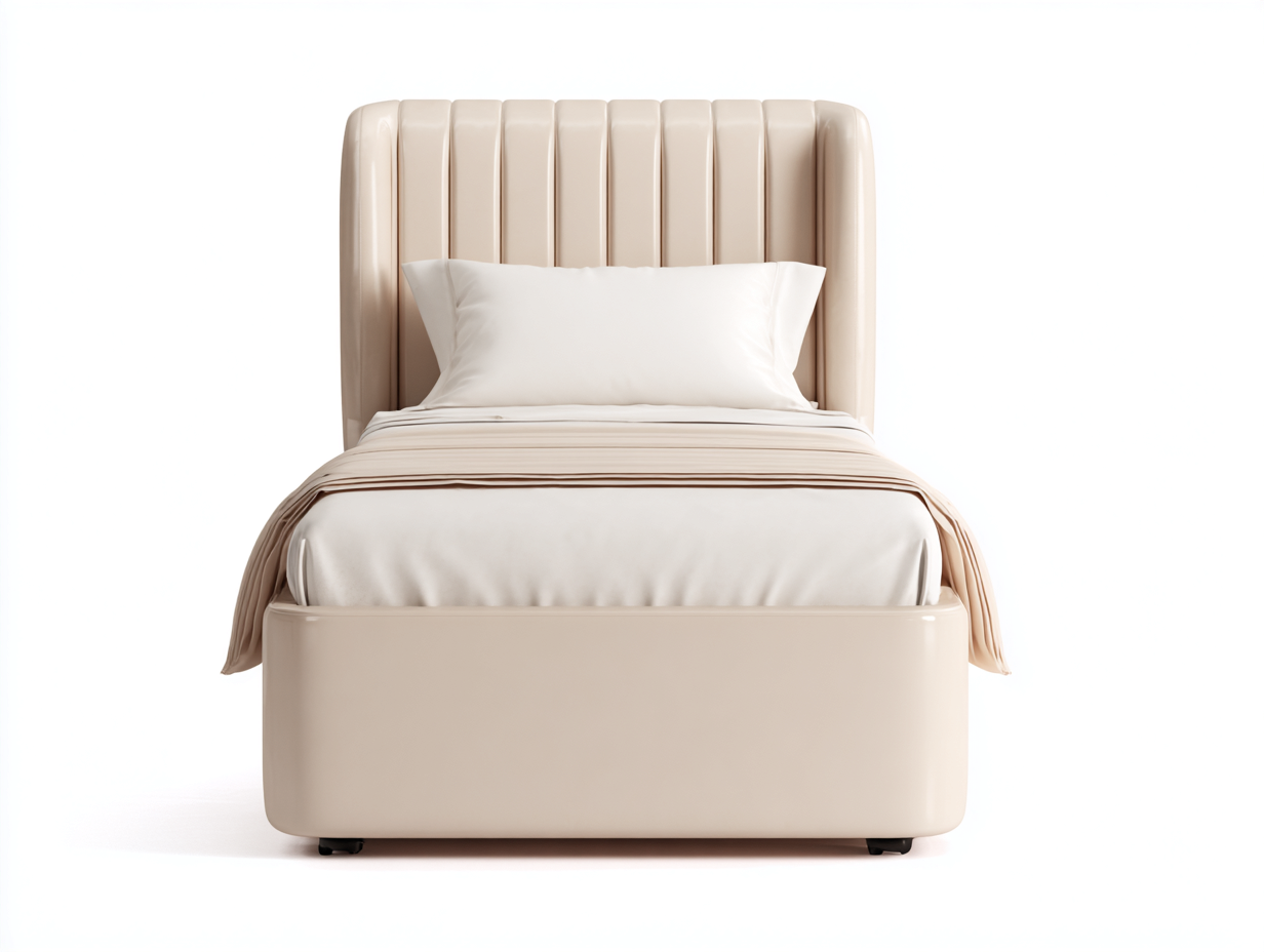 Single Beds Upholstered Single Bed Frame 200x100x110 cm - Beige - Modern Bedroom Design